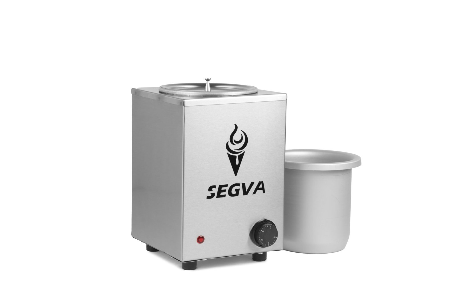 Su gran capacidad de 2700 cc te permite manejar volúmenes importantes de chocolate, reduciendo los tiempos de preparación y permitiendo un flujo de trabajo constante. El recipiente interno de aluminio anodizado no solo asegura una conducción uniforme del calor, sino que también es resistente y fácil de limpiar. La tapa superior desmontable es un detalle de diseño práctico que mantiene el chocolate protegido y a la temperatura adecuada, lista para ser utilizada en cualquier momento.